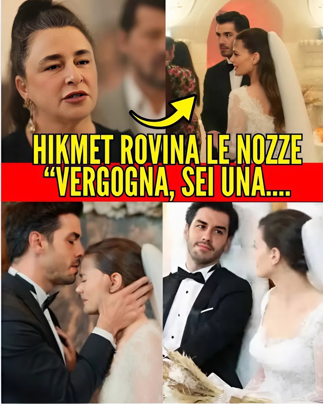 Il rumore di quella porta è un colpo secco. Hikmet entra senza invito con lo sguardo di chi non chiede permesso, ma pretende tributi. Nu tenta una battuta tagliente per sgonfiare la tensione, ma la miccia è già accesa. La donna avanza e, davanti a tutti, sferra la sua raffica di accuse: anni di “amore, cure, protezione” sbattuti in faccia come prove a discolpa; poi la frase che lacera la sala come una lama: “Dovresti vergognarti! Una figlia non invita sua madre al proprio matrimonio. Sei sempre stata così? Una bambina senza cuore, ingrata.” Le parole non sono semplici rimproveri, sono colpi ben assestati contro le fragilità che Sevilay conosce da sempre. Il coro degli invitati tace, la musica si ritira come una marea sorpresa dalla tempesta. In quell’istante, la festa smette di essere un rito privato e diventa un tribunale dove l’imputata è l’autonomia di una figlia.